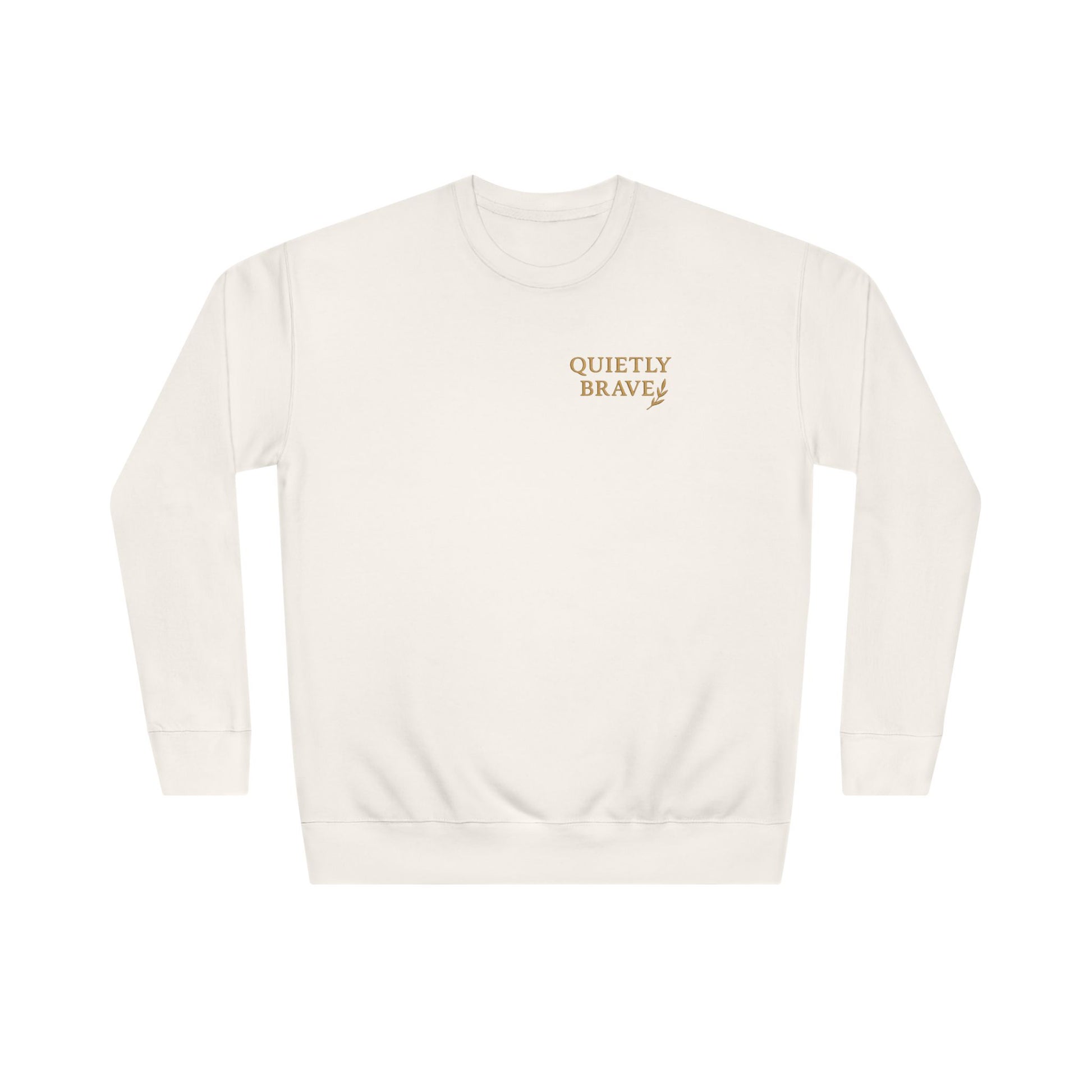 Quietly Brave Unisex Crew Sweatshirt – Empowering Embroidered Fleece, Cozy Everyday Wear