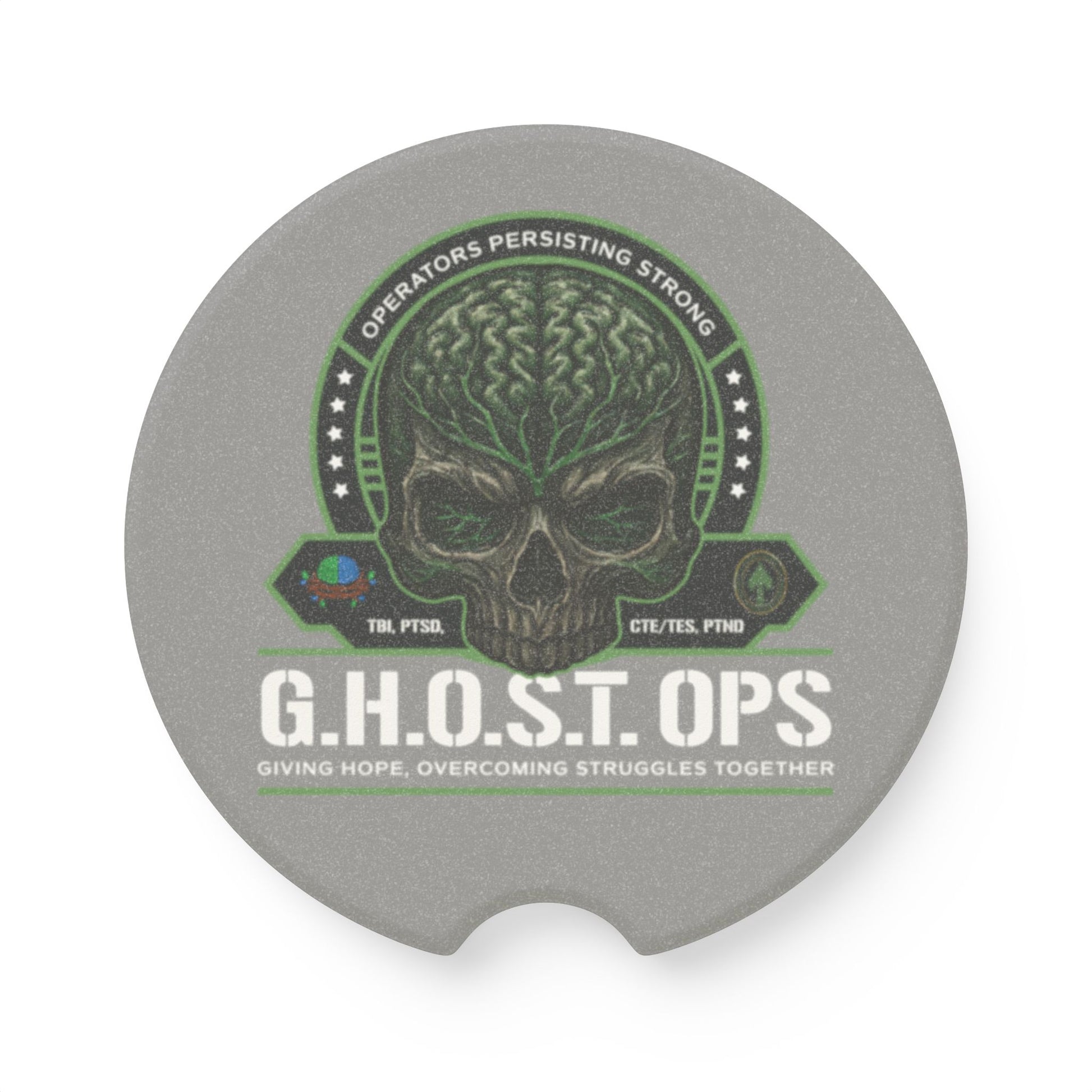 G.H.O.S.T. OPS Soapstone Car Coaster, Skull Car Accessory, Unique Gift for Military, Cop, or Tactical Enthusiasts, Car Interior Décor