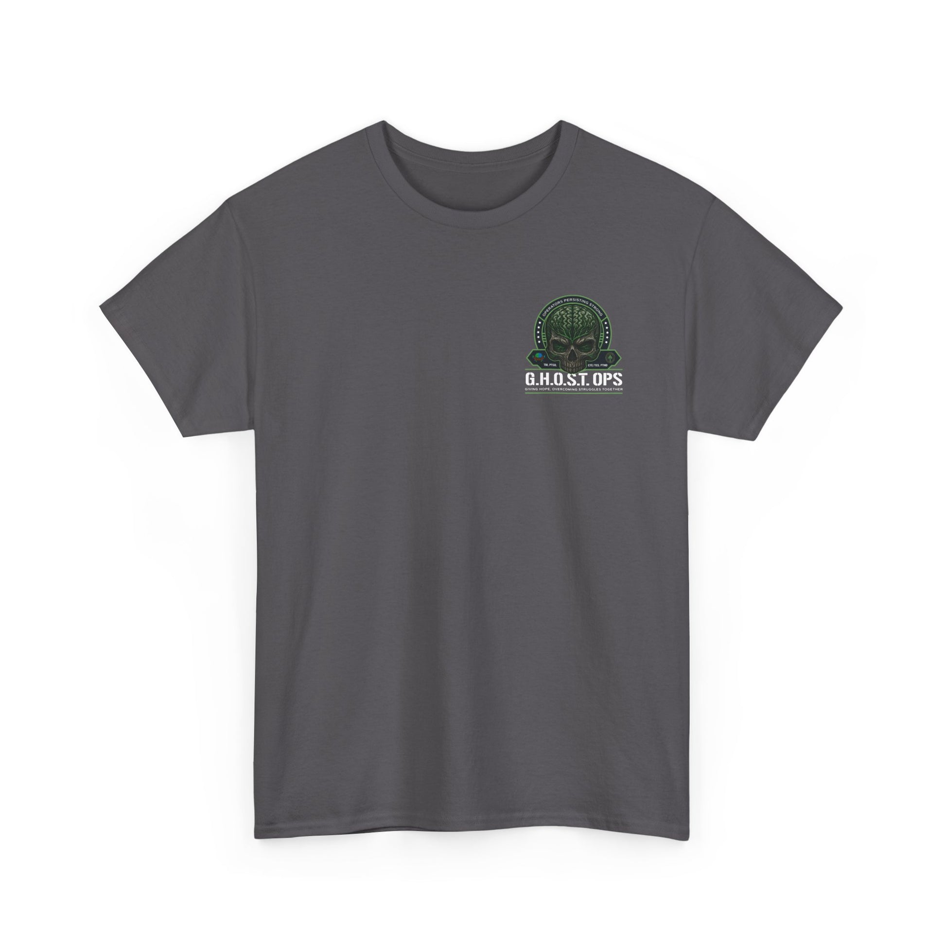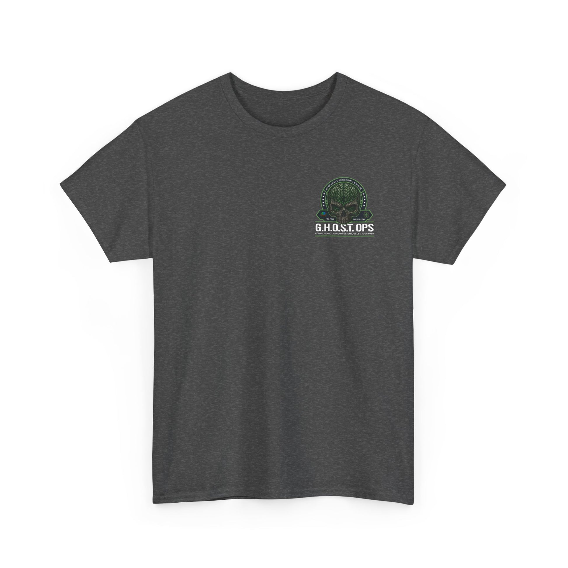 G.H.O.S.T OPS Classic Unisex Heavy Cotton Tee, stands for something. This ultra-comfortable tee is a must-have addition to your wardrobe featuring the official Ghost Ops Logo, honoring the warriors who served in silence. Made for those who've seen the unseen. Whether you're a veteran, a family member, or someone who supports the mission, this shirt lets you wear your grit with pride.